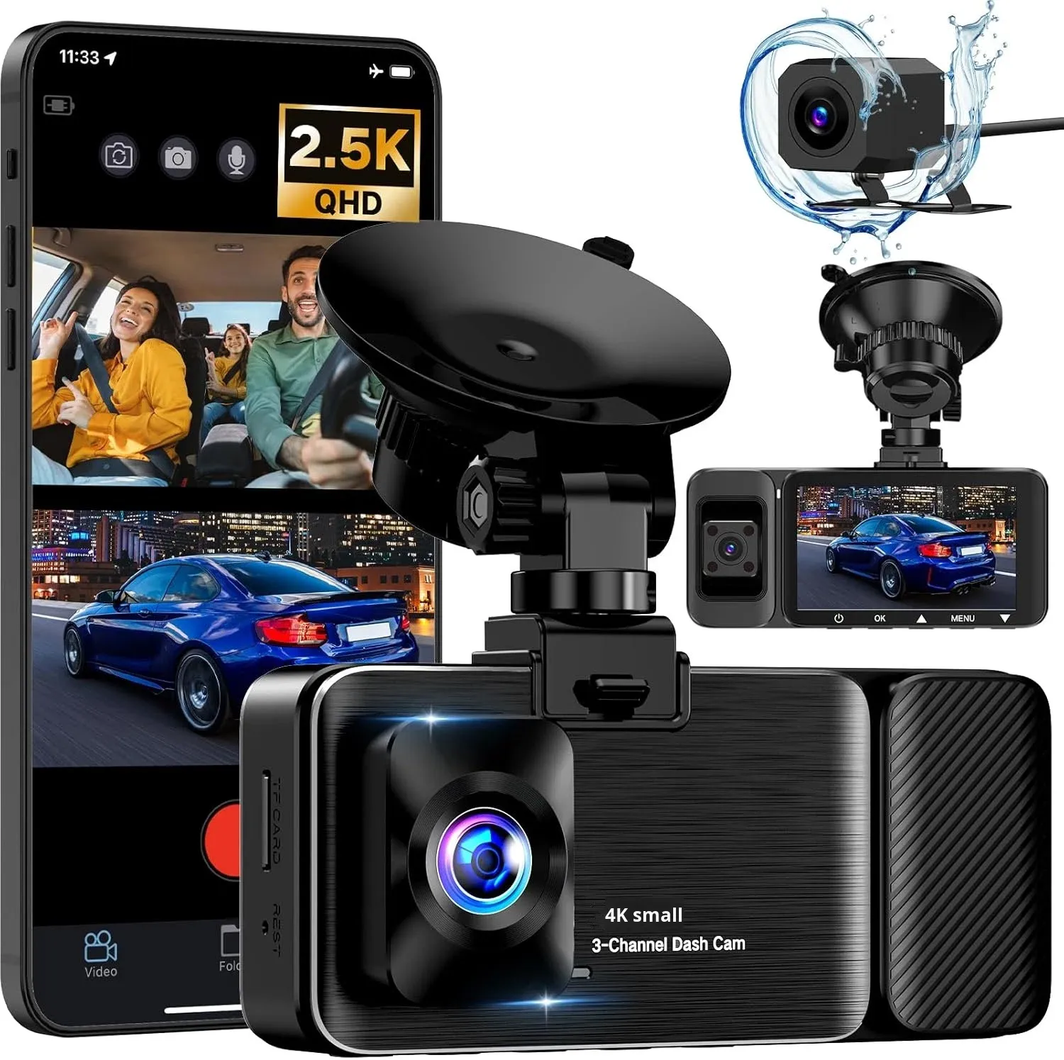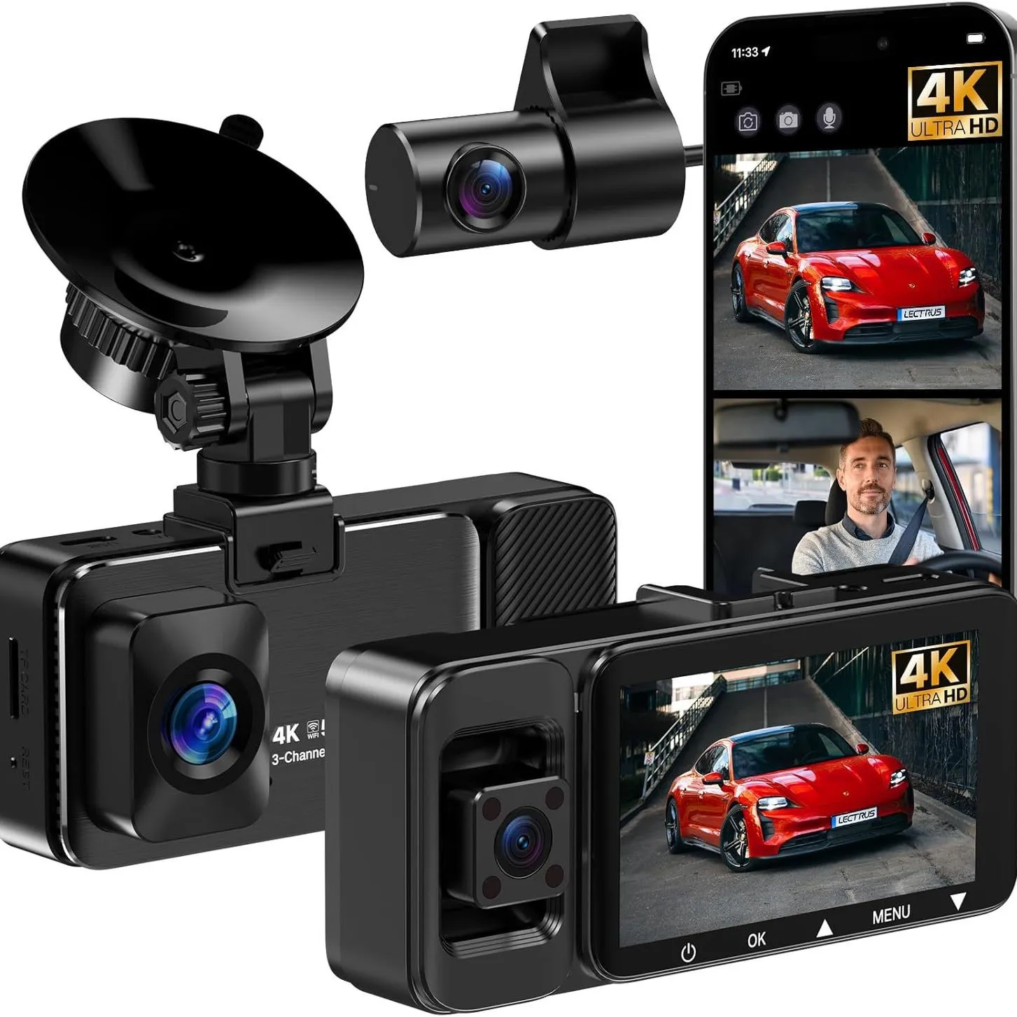 Car Driving Recorder with 4K Triple Recording 5G WiFi High-Definition 24-Hour Parking Monitoring